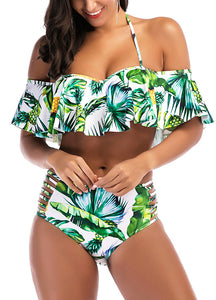 Maillot de Bain femme vert volants découpe Bikini motif ananas