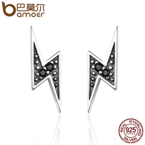 BAMOER New Arrival 100% 925 Sterling Silver Exquisite Lightning & Black CZ Stud Earrings for Women Fine Jewelry Brincos SCE156