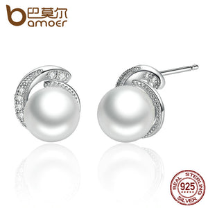 BAMOER Pearl Earrings Jewelry 925 Sterling Silver White Pearl Push-back Stud Earrings For Women Fashion Jewelry SCE021