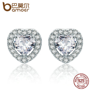 BAMOER New Arrival 925 Sterling Silver Double Heart Love Stud Earrings for Women Clear CZ Silver Earrings Jewelry Brincos SCE059