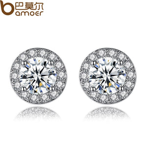 BAMOER Simple Silver Color Round Shape Stud Earrings with AAA Zircon for Women Anniversary Fashion Jewelry YIE092