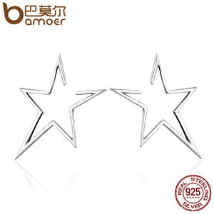 BAMOER New Arrival Authentic 925 Sterling Silver Exquisite Star Stud Earrings for Women Hyperbole Fine Jewelry Bijoux SCE107