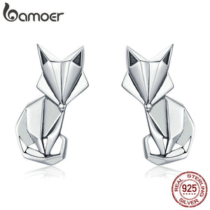 BAMOER Hot Sale Genuine 925 Sterling Silver Fashion Folding Fox Animal Stud Earrings for Women Sterling Silver Jewelry SCE526